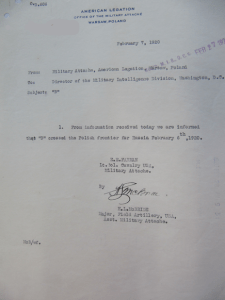 On Feb. 7, 1920, Lt. Col. E. E. Farman, the military attaché in Warsaw, sent a coded message to Marlborough Churchill. “From the information we received today we are informed that ‘B’ crossed the Polish frontier for Russia on February 6, 1920.”