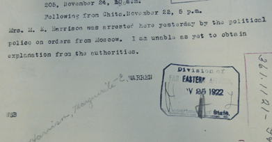 As mysterious as the reasons for Harrison’s release were the conditions she faced one she left Lubyanka. In 1921 she was given just minutes to catch a train headed to Riga. At that time, she left her belongings at Lubyanka. and a Cheka car raced her to the station just as the train was about …